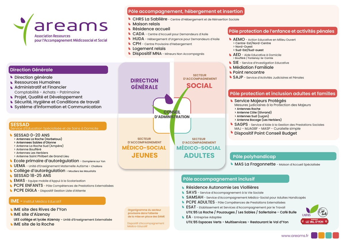 L'AREAMS est une association qui intervient dans le champ de la prévention, de la protection, du soin, de l’éducation, de la formation, du handicap de l’inclusion et de l’action sociale et médico-sociale.